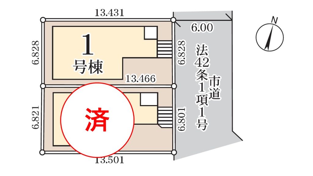 | 面積 | <1号棟> 建物面積:95.37㎡ 土地面積:91.83㎡ | 建ぺい率・容積率 | 建ぺい率:60%/容積率:200% |